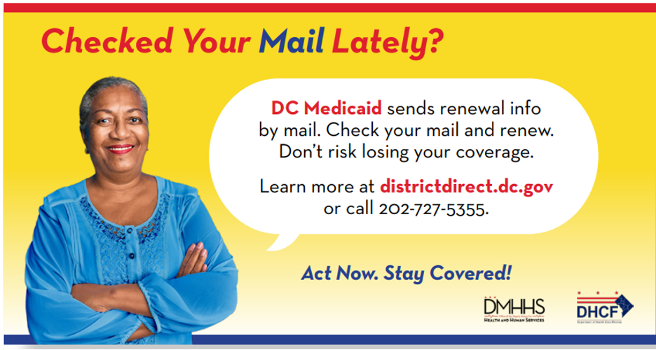 You can help inform Medicaid beneficiaries about renewing their Medicaid coverage and exploring other available health insurance options if they no longer qualify for Medicaid, Alliance, or the Immigrant Children’s Program. DHCF recently updated its Stakeholder Communications Toolkit with new materials and messages. The toolkit also has instructions for using the District’s online benefits portal, District Direct. You can help individuals create an account, update their information, and access call centers where interpreters and in-language staff are on hand to assist. All Medicaid beneficiaries should renew their health coverage by or before June 30, 2024.
